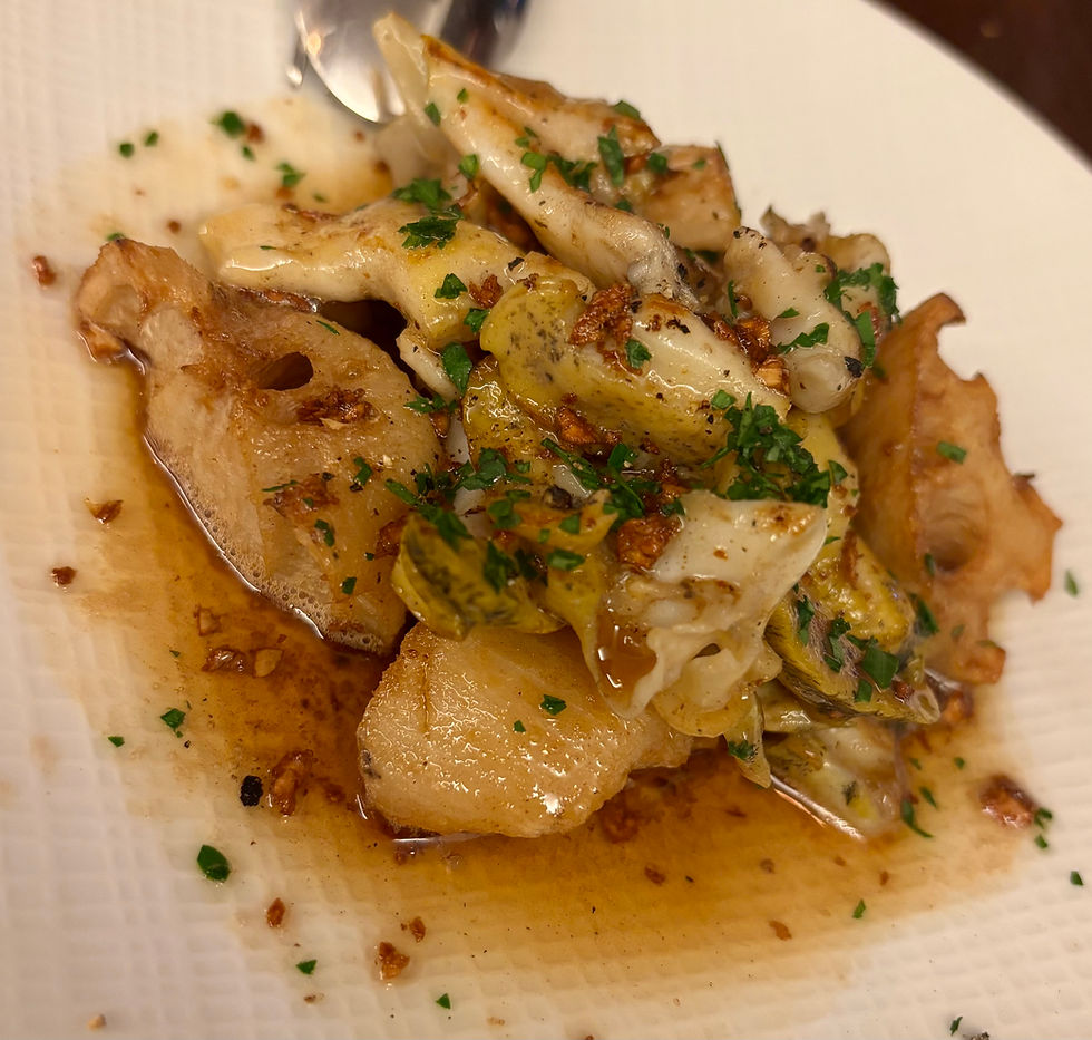 Next, we shared some roasted squid and sunchokes dressed with fried garlic, olive oil and herbs ...